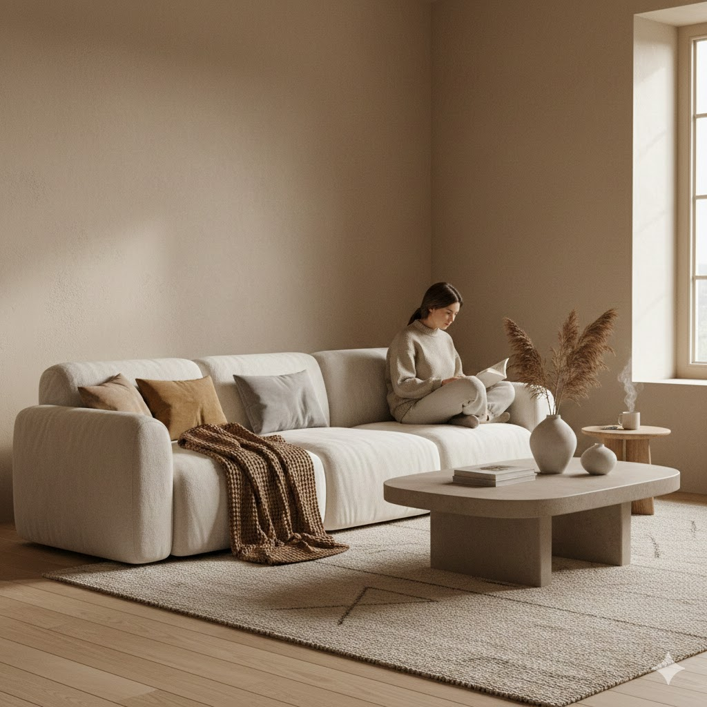 We are seeing a massive shift toward Warm Minimalism. Think of it as a hug in room form. We’re talking about “earthy” neutrals—tans, soft ochres, and muddy greens. It’s not about having nothing in the room; it’s about having a few things that feel expensive and tactile, like a plaster-finish wall or a velvet sofa you actually want to nap on.